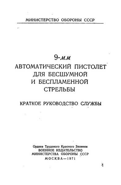 Пистолет АПБ Краткое руководство службы 9-мм автоматический пистолет для бесшумной и беспламенной стрельбы (АПБ) (изд.1971), формат: djvu