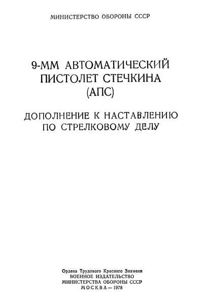 Пистолет Стечкина (АПС) Наставление по стрелковому делу 9-мм пистолет Стечкина (АПС) (изд. 1957), формат: формат: djvu