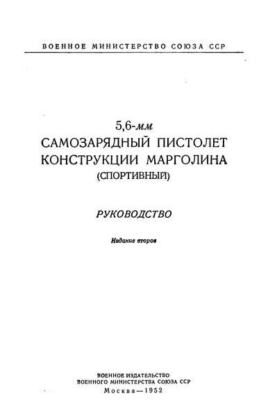 Пистолет Марголина Руководство 5,6-мм самозарядный пистолет конструкции Марголина (изд. 1952), формат: djvu