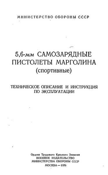 Техническое описание и инструкция по эксплуатации 5,6-мм самозарядные пистолеты Марголина (изд. 1976), формат: djvu |