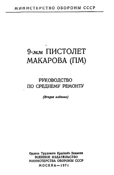 Руководство по среднему ремонту 9-мм пистолет Макарова (ПМ) (изд. 1971) формат: djvu |
