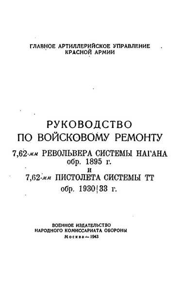 Руководство по ремонту Револьвер Наган обр. 1895 г. и пистолет Токарева (ТТ) обр. 1930 г. (изд. 1950), формат: djvu |