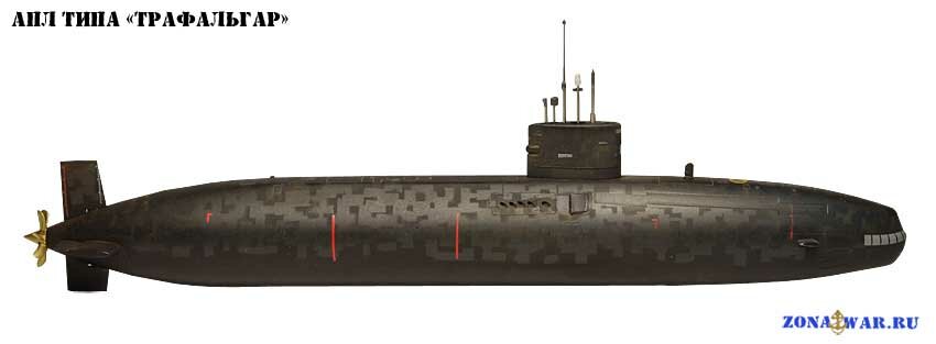 Головная подводная лодка «Трафальгар» была спущена на воду в 1981 г. и введена в состав ВМС Великобритании в марте 1983 г. .