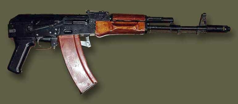 АК-74Н «Ночной» вариант с боковой планкой для крепления инфракрасных ночных прицелов. Магазины, первоначально изготавливаемые из оранжево-коричневого пластика, стали делать из черного пластика.
