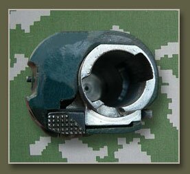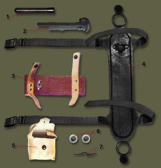 Стреляющее устройство может заменяться специальным вкладышем, позволяющим отрабатывать приёмы метания ножа , исключая возможность деформации механизмов и ствола. |