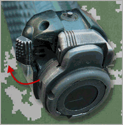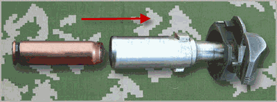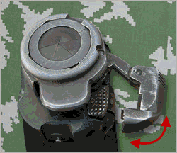 Для заряжания ножа надо расфиксировать запирающее устройство , повернуть ствол и вынуть его из рукоятки ножа .