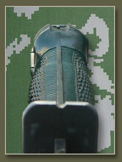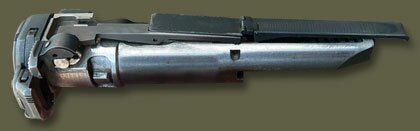 Ствол располагается в задней части рукоятки, дульный срез в торце рукоятки прикрыт разрезной резиновой шторкой.