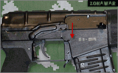 На ствольной коробке размещены также переводчик вида огня и защелка магазина с пружиной.