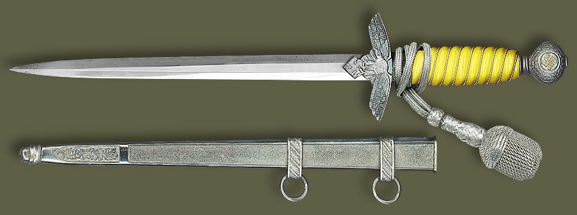 В этой модели форма черена претерпела изменение следующего характера: он стал сферической формы, с обычной свастикой, повернутой на 45° и окаймленной изображениями желудей и дубовых листьев. Свастика носила объемный характер, чуть выступая из поверхности и, как правило, была позолочена. Спиралевидной формы рукоятка могла выполняться из различных материалов (слоновая кость, дерево пластик) и имела разные цветовые оттенки. Выделяют четыре основных цвета по аналогии с армейским кортиком: белый, желтый, оранжевый и черный. Лицевая сторона крестовины содержала изображение официального орла Luftwaffe, сжимающего в когтях свастику. Над эфесом находились выступающие выгравированные изображения дубовых листьев. Обоюдоострый клинок длиной 10 и 1 /4 дюйма имел гладкую поверхность и мог выполняться по желанию заказчика из дамасской стали (за отдельную плату). Поверхность ножен имела зернистую текстуру. В нижней части содержалась гравировка в виде дубовых листьев. Кроме того, имелись две плоские вставки в виде обхватывающих полос, к которым крепились специальные кольца, за которые должен был цепляться подвес.