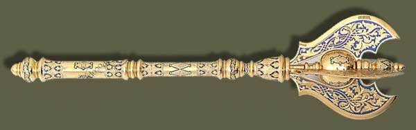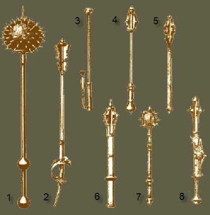 БулаваСимвол власти. Первоначально - похожее на дубину оружие с выступами для разбивания лат, позже булава стала оружием охранников и телохранителей и в конечном итоге - церемониальным символом власти. Так как булава отождествлялась в Англии с королевской властью, она была принята Палатой Общин в 1649 г. в качестве церемониального символа и стала важной эмблемой права парламента управлять страной, завоеванного незадолго до того под руководством Кромвеля.Булава ГеркулесаЦарский атрибут булава (с круглой головой) считается местонахождением сверхъестественной силы ее носителя. Бог царей Гор — "хозяин булавы, чтобы ею сразить врага". Символ силы, булава бога хранилась в святилище. Булава и лук составляют атрибуты бога Упуаута. Булава была также метафорой для "жестокого глаза Гора". Булавой царь убивает своего врага, как всегда это изображается на пилонах храмов. Согласно одной надписи, Аменхотеп II должен был убить булавой семь князей, восставших против бога Амона. Так как булава долгое время изготовлялась из светлого известняка, ее изображение служило идеограммой для белого цвета.Полагают, что булава является первым специально изготовленным видом оружия. Свое происхождение она ведет от необработанной палки и камня, который человек хватал тогда, когда нуждался в оружии. Эффективность камня увеличивалась, если он был укреплен на конце палки. Не все булавы имели круглое навершие. Часто их действенность усиливалась острыми ребрами или таким же наконечником, так что булава начинала походить на боевой молот или топор. В конце концов булавы начали изготавливать полностью из металла. Появились церемониальные булавы — символ власти и господства. Дальнейшее развитие этого оружия стало невозможным, однако и в наше время простые деревянные дубинки продолжают использоваться во всем мире для поддержания общественного порядка.