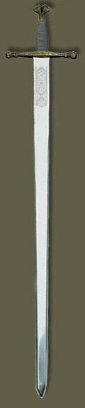 Скандинавский меч, который еще называют норманским, очень хорошо подходил рослым и физически сильным викингам. Он был достаточно толстым в поперечнике, имел очень массивный противовес (у некоторых мечей размером почти с кулак) и небольшую гарду (или вообще не имел ее). Некоторые мечи имели на навершии крюк или небольшой крюкообразный клинок, которым можно было атаковать противника, уведя в сторону его меч основным клинком. Мечи 9 - 10 вв. имеют ровный широкий клинок, закругленный к концу, и являются только рубящим оружием. Мечи 11 - 12 вв. С заостренными концами и слегка сужающимися книзу клинками имеют значение не только рубящего оружия, но и колющего. Мечи изготовляли из железа и сварочного булата. В конце 12 в. рукоять меча удлиняется настолько, что позволяет действовать двумя руками. В этот период мечи имеют заточенные у острия клинки, способные проникать сквозь сочленения доспехов. Ножны у меча деревянные и покрываются кожей или материей и привязываются к поясной портупее на перевязи, каждый конец которой, разрезанный на ремни, образует плетеное кожаное кольцо. Ремни эти обычно покрыты бархатом, шелком и шиты золотом, а иногда украшены финифтью. К этому времени относится появление рыцарского оружия. Рыцарские мечи выделяются своей красотой, считаясь благородным оружием. В продолжение месяцев их оставляли лежать на алтарях, они участвовали в литургии, их благословляли священники и даже освящали. Лучшие хранились в сокровищницах монастырей под алтарями, на могилах своих бывших владетелей. Им дают имена, как это делалось еще во времена Каролингов; при инвеституре, короновании, посвящении они участвуют в церемонии в силу строго соблюдаемого завета. Их происхождению часто приписывали сверхъестественный характер; некоторые из них якобы обладали волшебными свойствами. В первой четверти 14 в., после внедрения латного доспеха, клинок рыцарского меча стал длиннее, что увеличивало силу его удара и дистанцию. Так появился полутораручный меч, сначала в Германии, потом в Англии, затем - в остальных странах Западной Европы. В настоящее время, согласно европейской классификации, под коротким мечом понимается меч длиной до 60 см (2 фута), длинным - от 60 до 115 см (2 - 3,5 фута), полутораручным - 115 - 145 см (3,5 - 4,5 фута), двуручным - больше 5 футов, то есть 152 см. Клинок последнего был шириной 5 - 6 см. Длина его рукояти составляла около 30 см, весил он от 3,5 до 5 кг. Двуручный же "тяжелый меч" весил до 8 кг и мог доходить в длину до 2 м. На Руси меч являлся дорогостоящим предметом вооружения, часто передавался от отца к сыну. Мечи 10-12 вв. имеют клинок длиной около 100 см, шириной 4 - 6 см, толщиной средней части клинка 3 - 6 мм. Переход в 14 - 15 вв. от кольчуги к наборным доспехам повлиял и на эволюцию меча. Доспехи в бою легче было проколоть, чем разрубить. Поэтому прежнее рубящее действие меча заменяется в 14 в. на колюще-рубящее. Мечи становятся длиннее (до 120 - 140 см). Их рукоять делают большой, крестовину прямой и длинной (до 26 см). На клинке меча появляются трехрядные долы. а) черен\рукоять